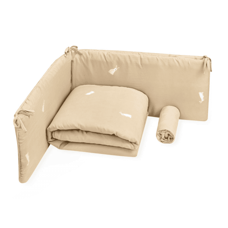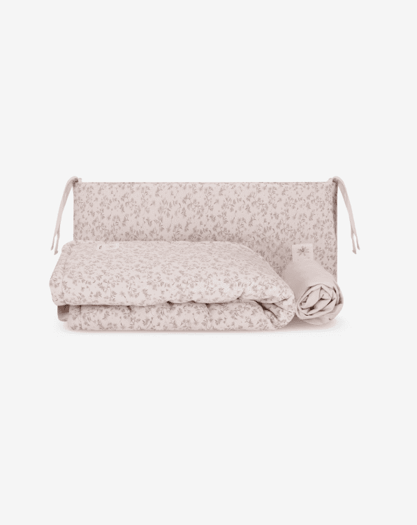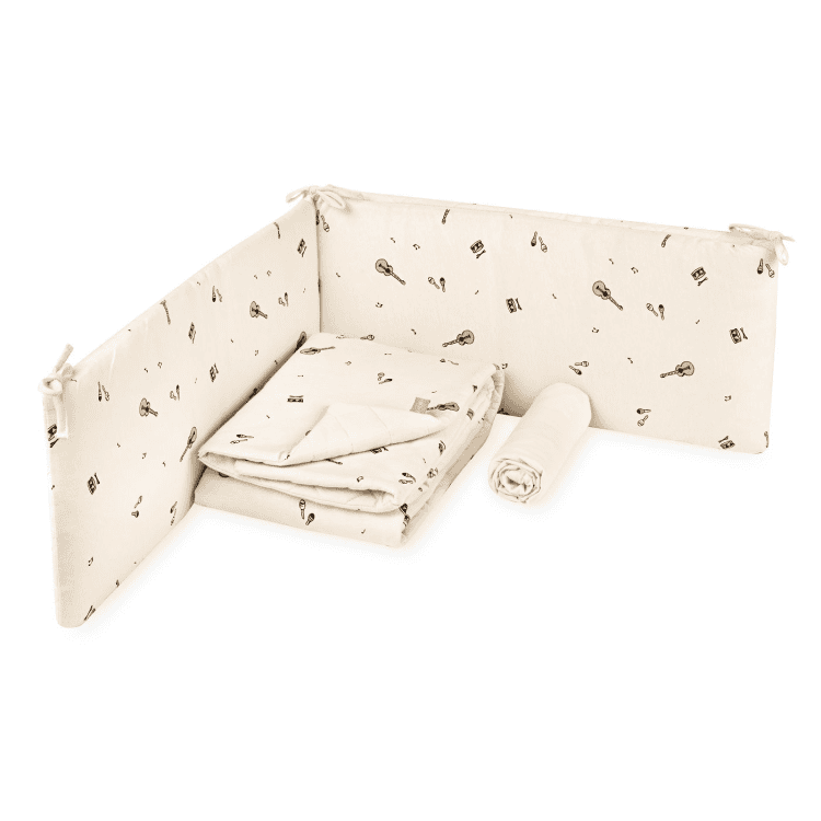 רוב הסטים כוללים סדין תחתון עם או בלי גומי, שמיכה ומגן מיטה כדי להגן על ראשו העדין של התינוק במהלך השינה.