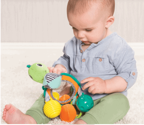 בובת צב רכה עם מראה, משולב רעשן וקל לאחיזה לתינוק. עם מראה בבטן מעודד משחקי הצצה. מתאים גם לסלקל, ועגלה.