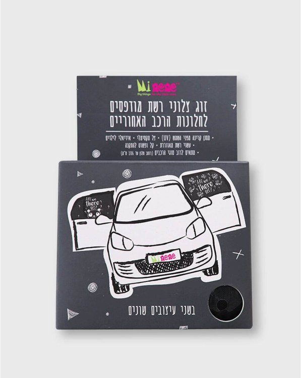 זוג צלוני רשת מודפסים בשני עיצובים שונים לחלונות הרכב האחוריים.