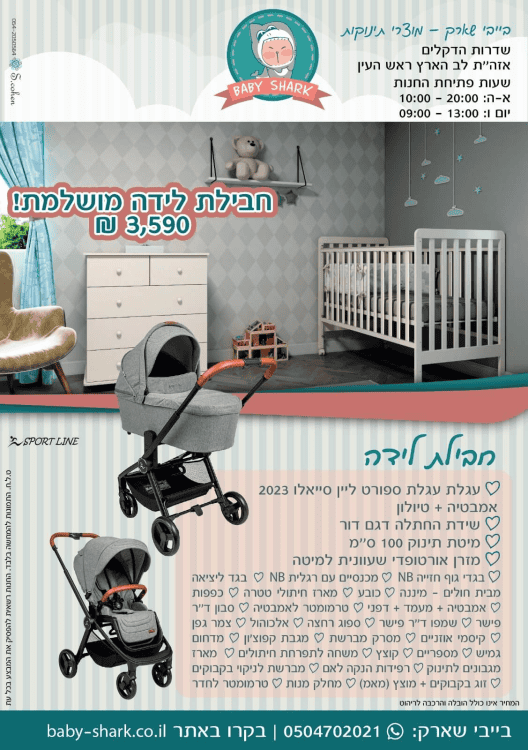 חבילת לידה משתלמת ביותר הכוללת כל מה שצריך: עגלת ספורט ליין 2023, מיטת תינוק +מזרן אורטופדי בציפוי שעוונית, שידת החתלה 80 ס”מ, ובנוסף סלכולל של 28 מוצרים נלווים.