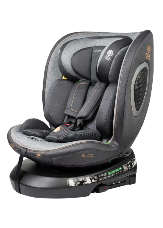 מושב בטיחות איזופיקס isofix משולב בוסטר מסתובב 360 מעלות. מושב הבטיחות מאפשר הכנסה והוצאה קלה של התינוק ע”י סיבוב המושב לכיוון הדלת. מתאים מגיל לידה עד 36 ק”ג. 6 מצבי שכיבה/ישיבה מערכת SIPS להגנה מרבית במקרה של פגיעת צד.