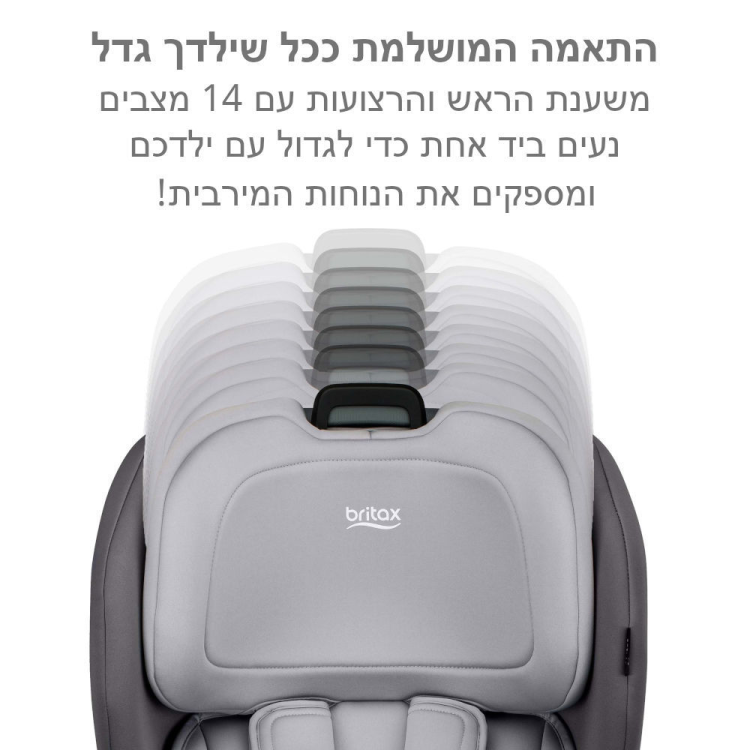 למשענת הראש 14 מצבים הניתנים לשינוי ביד אחת כדי לגדול עם ילדך.