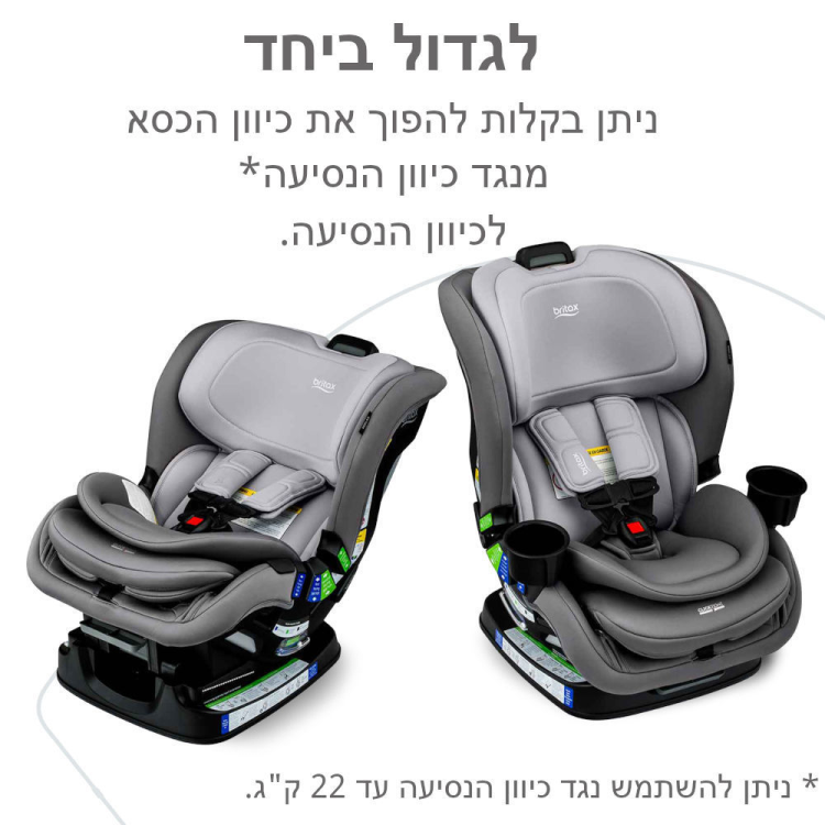 במושב בטיחות זה אפשר להסיעה את ילדך עד 22 ק”ג כנגד כיוון התנועה כדי לשמור על נסיעה בטוחה של ילדך עוד יותר (הנסיעה נגד כיוון התנועה פי חמישה יותר בטוחה),