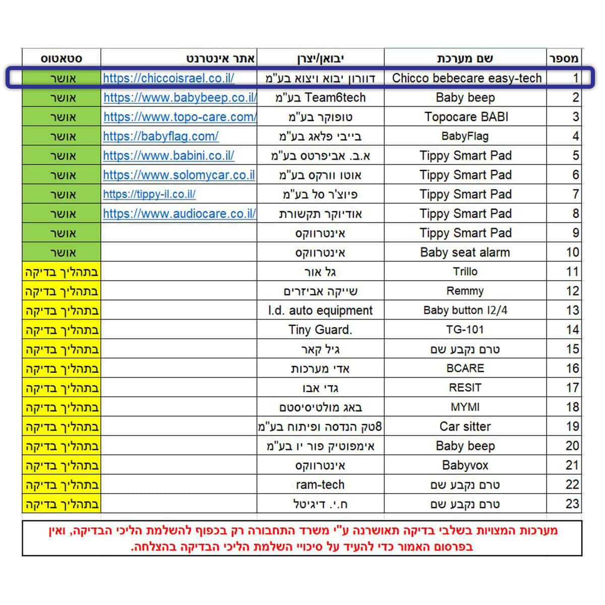 מכשיר BebèCare Easy Tech בעל מערכת אוניברסלית העומדת בדרישות המפורטות בתקנה 83ד’ לתקנות התעבורה ומקיימת את התקן והחוק האיטלקי