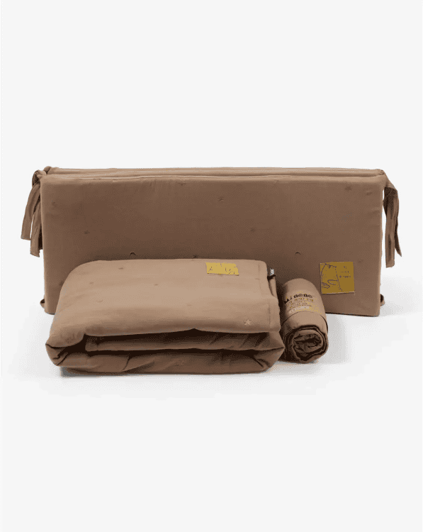 סט מצעים לעריסת תינוק חום – ליין רקום – מיננה