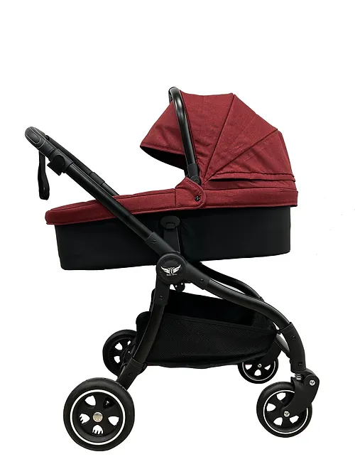 ידית העגלה מתכוונת למגוון מצבי גובה לנוחות מירבית. הידית מצופה עור איכותי ונעים (ניתן לשנות את צבע הידית לחום לפי בחירה , מגיע ביחד עם שלדת העגלה). סל אחסון איכותי ונוח לאחסון חפצים בתחתית השלד.