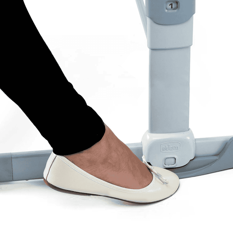 העריסה החדשה של Chicco Next2me Dream יכולה להתנדנד! תוכלו לעבור ממצב קבוע לנדנוד בפעולה פשוטה עם רגל אחת.