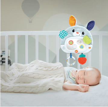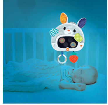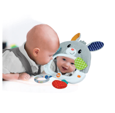 מראת ארנב קסם מבד רך ונעים ומרקמים שונים, המציגה 4 דמויות חבויות המופיעות במראה, עם 2 מצבים- מצב בוקר: לחצו על לחצן המוסיקה למנגינה עליזה ומשמחת, משכו בטבעת או בנשכן ותתגלה לכם דמות של חיה וקולה האופייני.