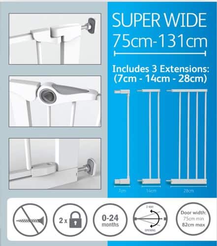 שער לחץ עם פס תחתון שטוח כולל 3 מאריכים 75-131 ס”מ שחור – במבינו