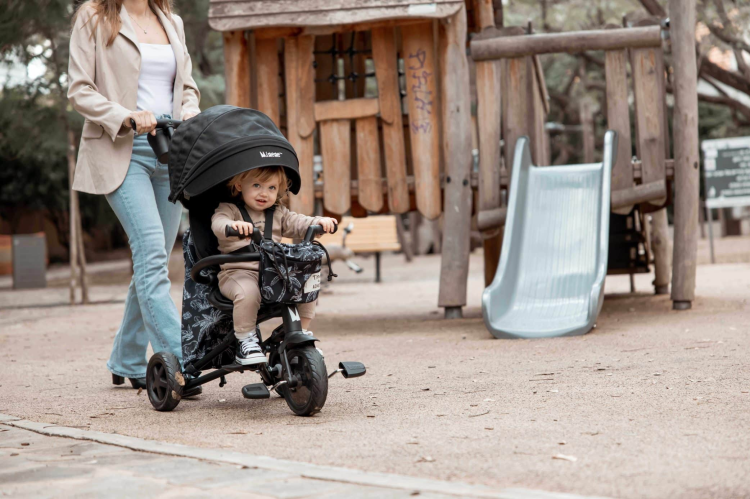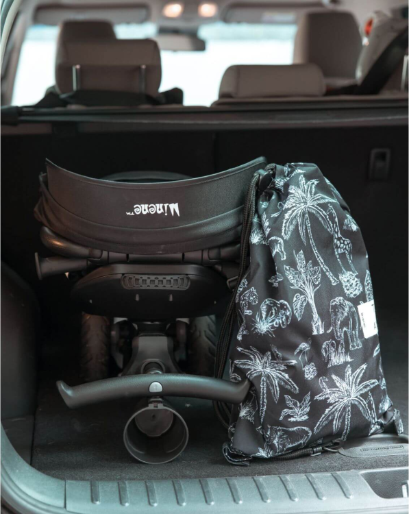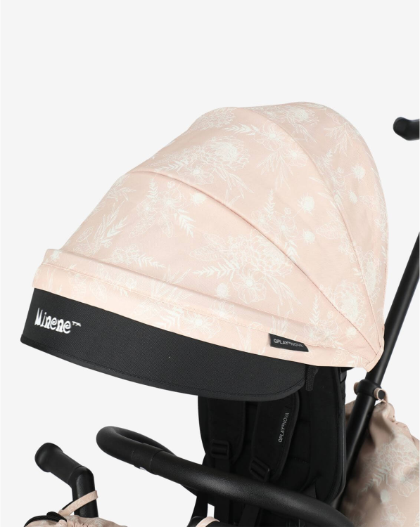התלת אופן מיננה מגיע עם זוג תיקי אחסון וגגון בהדפסי הקיץ החדשים שלנו, הוא מותאם במיוחד עבור טיול מושלם בחוץ.